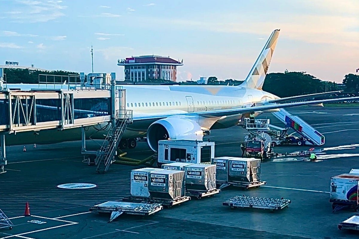 Every seat in economy is full. As I walk to my place in the last-but-one row, I speculate that most passengers are Indonesians returning to work in the UAE; an estimated 300,000 citizens are based there. Normally there are two widebodied Etihad flights a day on the route, as well as a pair of Emirates A380 SuperJumbo departures to Dubai.