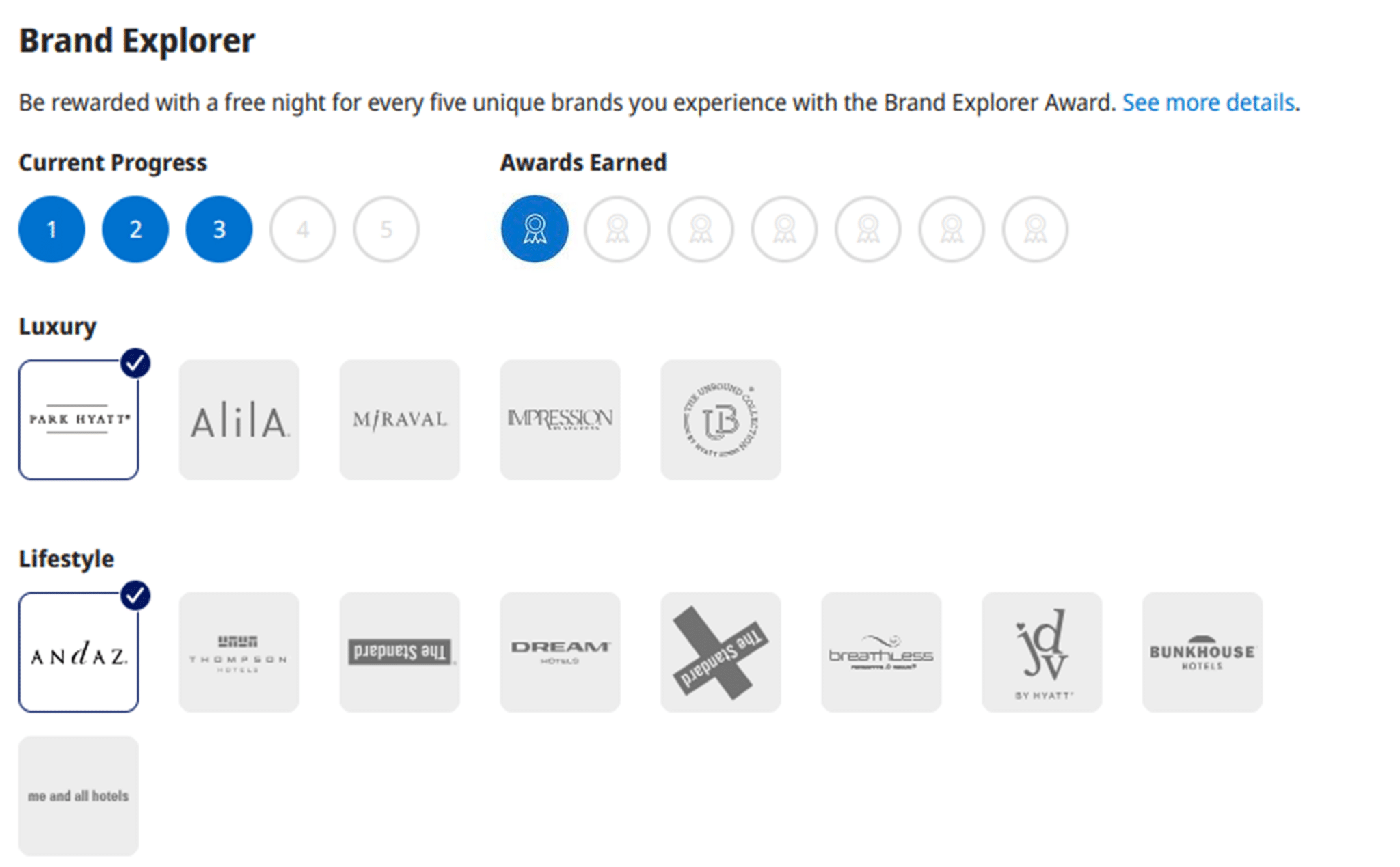 On this same page, you can also see how many Brand Explorer Free Night Awards you have already earned and how many are still available to earn.