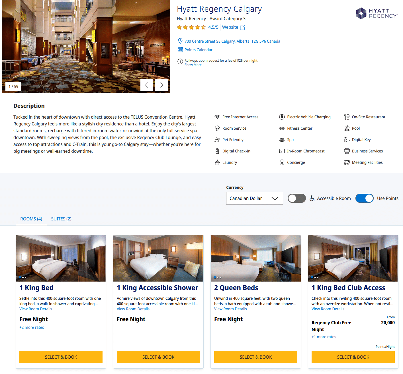 On the search results page, select your preferred hotel. If the property has award availability, choose the option to use a Free Night Award and continue through the booking process as usual.